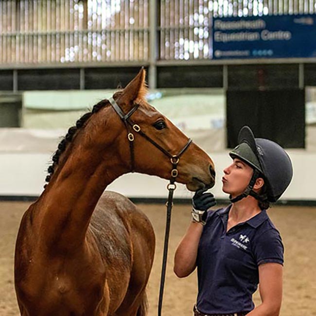 I am currently fortunate enough to be able ride a San Remo x Sandro Hit 14-year-old chestnut mare called Scarlet Fire. I have ridden for the Pony Club at championships on several occasions for both dressage and showjumping but my main passion is dressage. I have successfully ridden for my BD youth region (North and East) at regional competitions and also the Home Nations Riding for England. I absolutely love it.