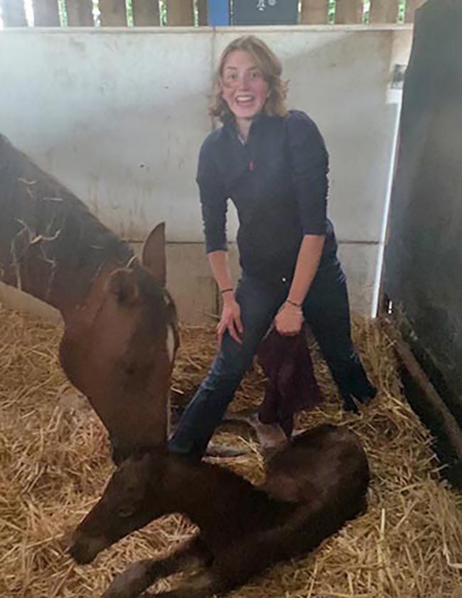 Olwyn Coope, a family friend has been a huge supporting influence and offered a wealth of knowledge, furthering my interest for breeding and handling of young stock from an early age. Starting at 10 years old when she woke me up at midnight to watch my first ever foal be born. That same filly foal by Morricone out of our San Remo mare who is called Midnight is now six and I am currently producing her.