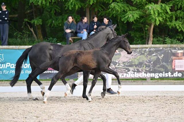 The highest price of the auction evening, at which the 12 young candidates toured the large arena alongside their dams at this lovingly decorated showground, was achieved by Hendrik Schulze Rückamp for his energetically paced stallion prospect with the apt auction name Energy Berlin. The bay is a son of Escaneno, who has already qualified for the Bundeschampionat in dressage with top marks. He is out of Hallo Negra (Negro), who has four half-siblings successful at advanced level alone, and was bred and exhibited by Gabriele Eder from Osterhofen, Bavaria. She had every reason to celebrate as a new customer from the USA placed an online bid of €21,000 for her bundle of energy...