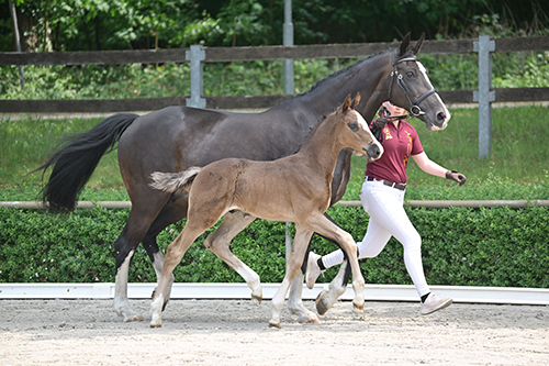 In 2025, the South German Championships for U14 to U25 riders were scheduled to continue equestrian events in the large, beautifully situated grass arena. And the meeting of the best young South German riders and the DSP foals paid off. Together, they braved the high temperatures, and ultimately, the combination of sport and breeding was more than successful. In the auction ring on the Saturday evening, Eagle to Fly (Emerald van’t Ruytershof - Call to Life x Cascari), bred by Frank Timmreck, generated the greatest interest, with auctioneer Hendrik Schulze Rückamp’s gavel falling at €16,000 in favor of a local equestrian patron. This secures the sporting career of this son from the successful DSP line of Teichrose, which, along with numerous sports stars and licensed stallions, has produced DSP Cashmoaker.