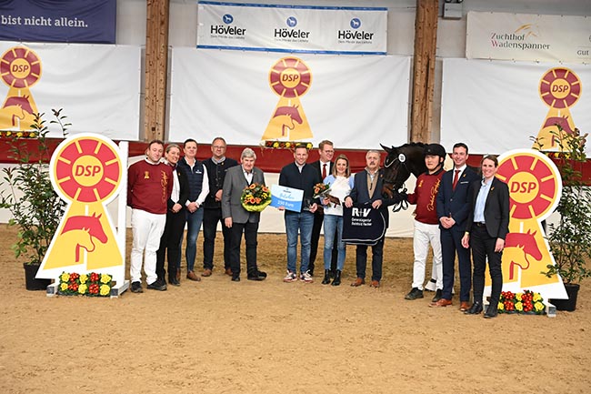 It’s a long-standing tradition of the DSP Stallion Days that the respective Licensing Commissioner Sport of the commission provides commentary on the top stallions. And so it was Andy Witzemann, the showjumping commissioner, who described the first champion stallion of the event, a son of Heartbreaker out of a Diarado mare: “Long-legged, light-footed, and modern,” he complimented the dark bay, bred by Uwe Eberhardt in Herbrechtingen, Baden-Württemberg, and presented by Jürgen Laue from Gerbstedt in Saxony-Anhalt. Furthermore, the champion stallion moved “with great scope and impulsion.” With this offspring, the stallion’s dam has already produced her third licensed stallion, including a full brother to the DSP champion.