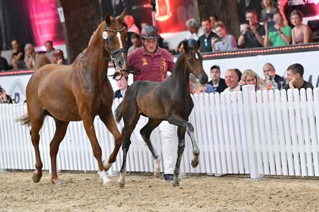 A foal that was picture-pefect, energetically moving off, every gait a highlight, and from a lineage that is successful in both breeding and sport. After a thrilling bidding duel, the dark bay colt was knocked down to the USA for an online bid of €105,000.