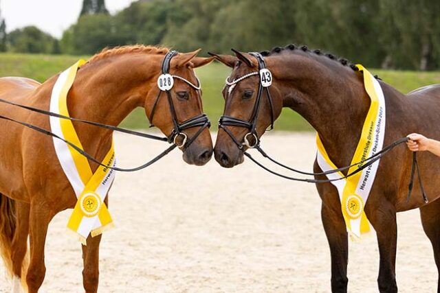 Champion Mare dressage Hann.Pr.A. Joyride (right) and reserve Champion Mare Hann.Pr.A. Ext.+ Embella Rose