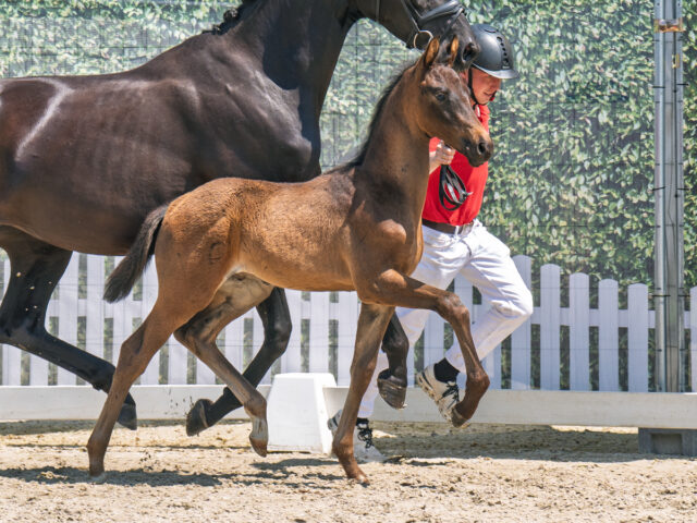 Vivant Vino, a son of Vino Tinto, achieved the top price of €31,000 during the recent Westfalian online auction, which saw 77% of the 30 dressage-oriented foals sold for an average price of €7,739. It was Vino Tinto’s first generation after he, himself, found his new home in the Netherlands last year at the Westfalian Spring Auction at a hammer price of €161,000. Some 14 parties competed for the knockdown of his son, who was bred by Noortje Radstake in the Netherlands, out of the Verb.Pr.St. Rubiera (Fontaine TN). The bids came from England, Switzerland, the Netherlands, and Germany., with the 40th offer claiming the prize.