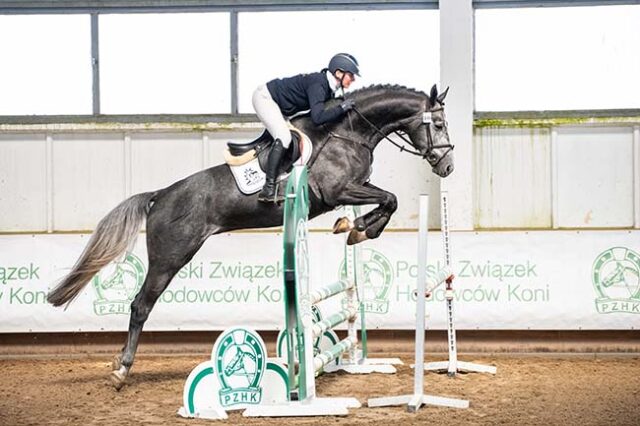 In group C (eventing), the highest result, excluding the cross-country test, was achieved by a stallion from the Liski National Stud Farm: Agitator wlkp (Peregrine/ex Paganini [Trak] – Agitacja wlkp x Hamlet Go [Trak]). A grey stud horse of modern type, who demonstrated flexible, free movements.